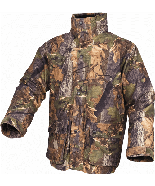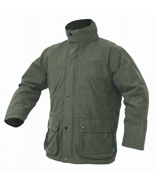Full length double opening zip, concealed hood in pocket, 2 lower front bellows pockets with cartridge holders, 2 hand warmer pockets, 1 internal chest pocket, fold-down waterproof seat flap, elasticated weather shrouds on wrists.